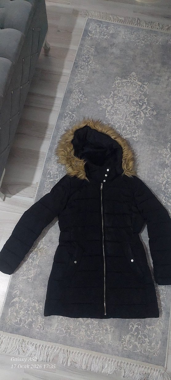 Kürklü Siyah Kadın Kışlık Mont