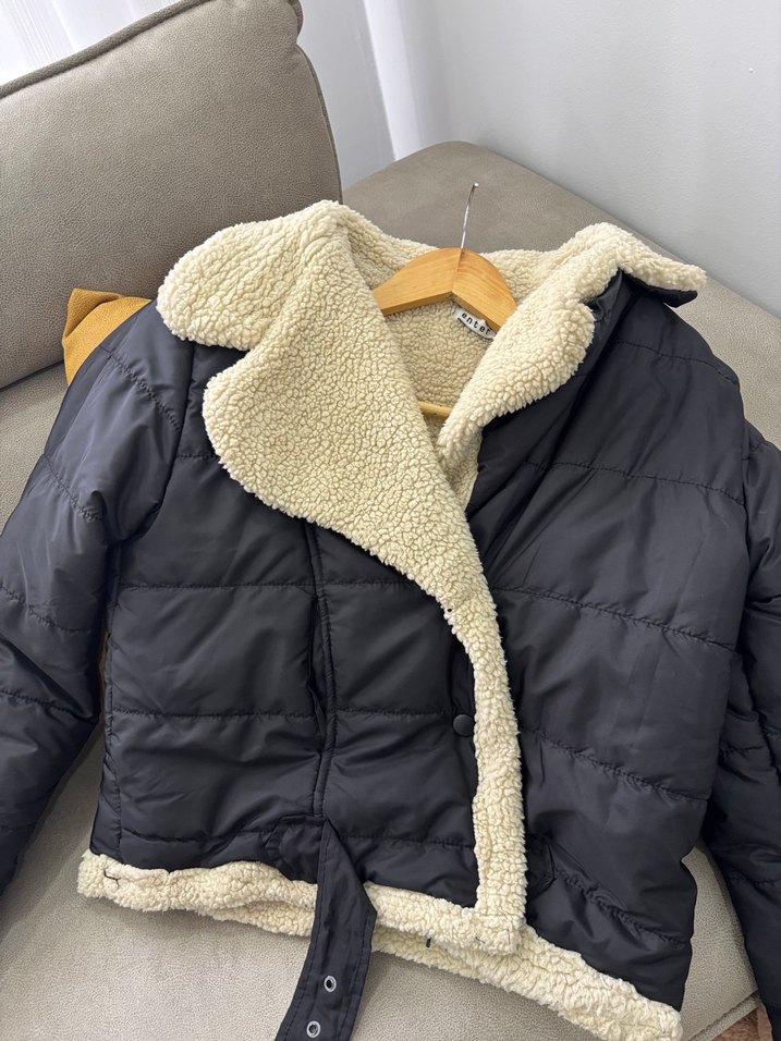 Kadın kışlık mont, kürklü detaylı, siyah renkte, fitted kesim ve çıtçıtlı. Yaka ve kenarlarda yumuşak kürk, rahat ve sıcak tutar. Midi boyda, günlük kullanıma uygun.Yaka kısmında eşitsizlik var ama giyince belli olmuyor