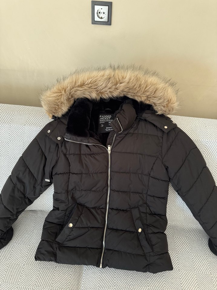 Kürklü Siyah Kadın Kışlık Mont Stradivarius