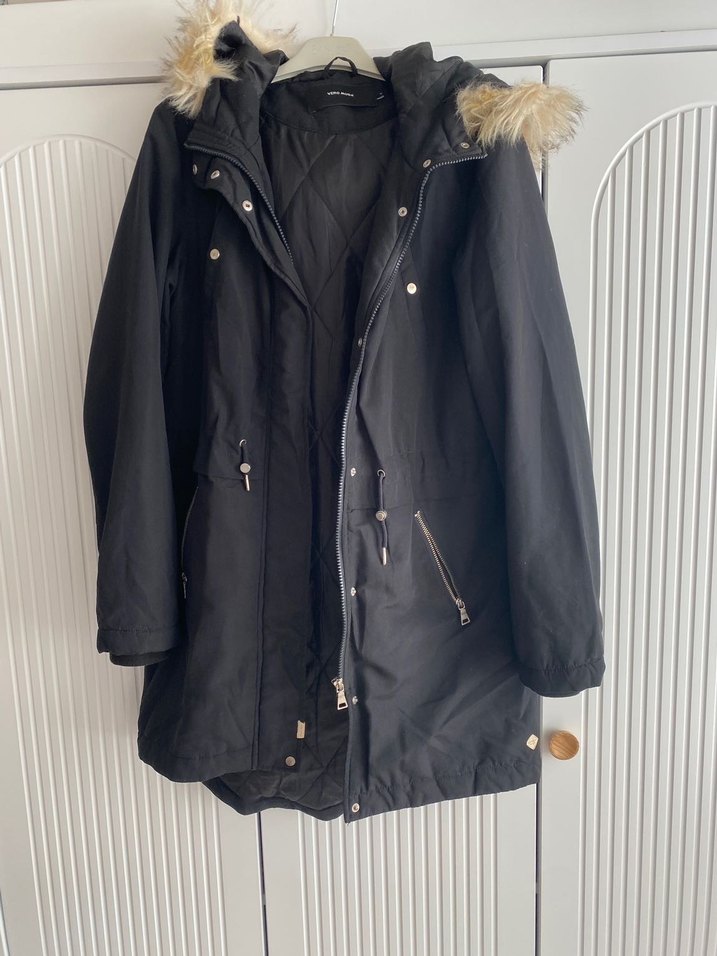 Kürklü kapüşonlu, siyah, fitted kadın midi ceket. Yumuşak ve sıcak kumaştan, çıtçıtlı ve fermuarlı ceplidir. Günlük kullanım için uygundur.