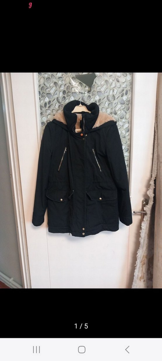 Siyah kadın ceketi, bol kesim ve uzun kolludur. Kapüşonunda kürk detayı ve fermuarlı cepleri vardır. Orta boy, yumuşak ve sıcak kumaştan üretilmiştir.