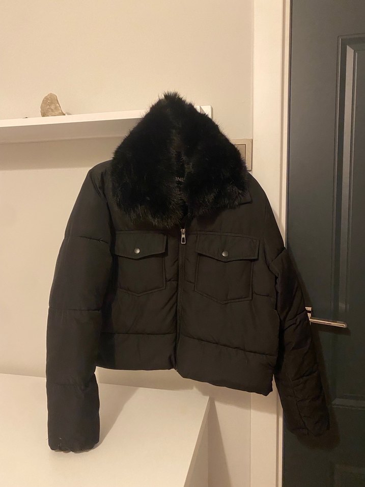 Kürklü detaylı, yakalı ve uzun kollu siyah kışlık ceket. Orta boy, vücuda oturan kesimiyle sıcak tutan yumuşak kumaştan üretilmiştir.