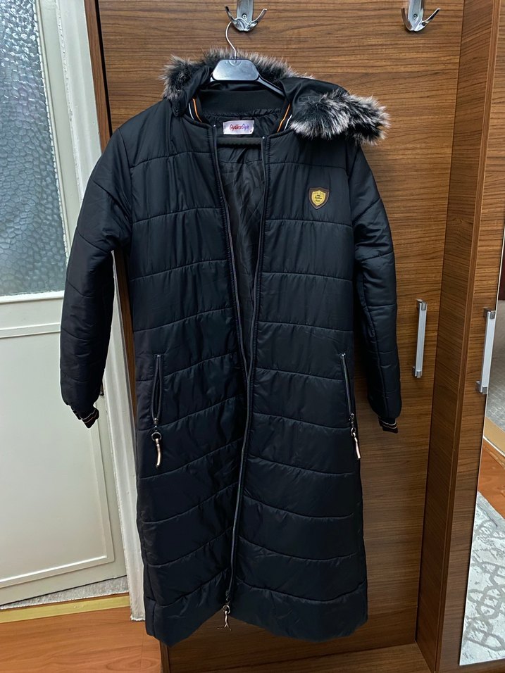 Kürklü detaylı, siyah uzun kışlık mont. Notlu yaka ve uzun kollu, rahat kesim. Yumuşak ve sıcak kumaştan, günlük sokak stili için uygundur. Uzunluk 110cm. Ürünün hiçbir problemi yoktur.