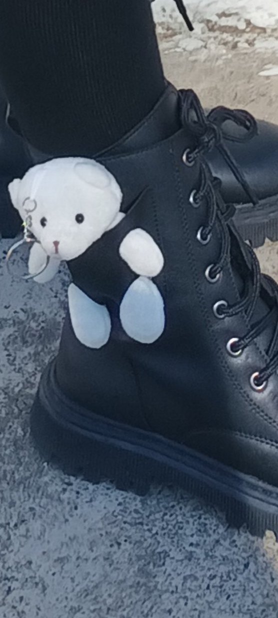 Siyah leopar desenli, kürklü detaylı goth tarzı kız botu, kauçuk tabanlı ve rock punk havasında. bir kez giyildi