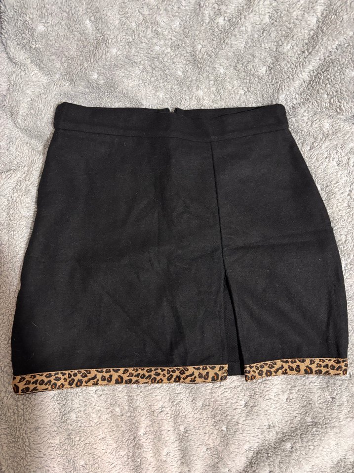 Kürklü Siyah Leopar Ve Yırtmaç Detaylı Mini Etek