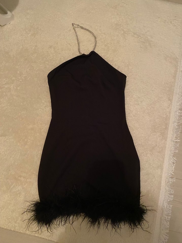 Kürklü Siyah Midi Abiye Elbise