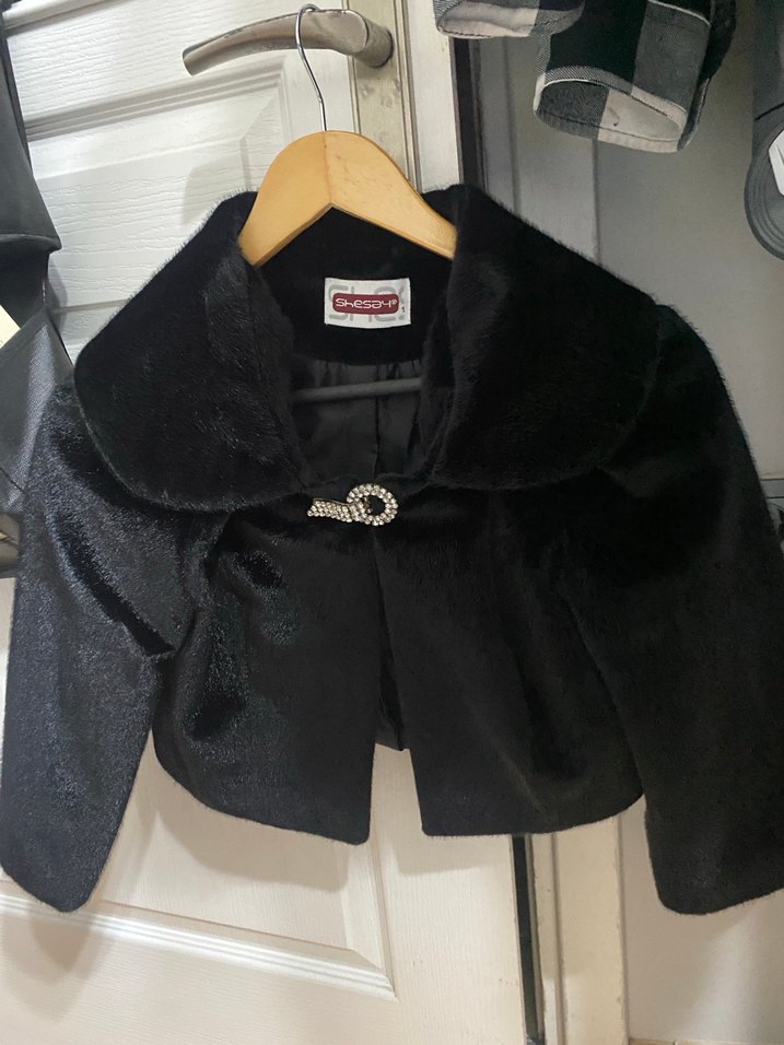 Kürklü detaylı, siyah kadın ceketi, notched lapel yakalı ve uzun kolludur. Midi boyda, fitted kesim ve dekoratif toka ile ofis kullanımı için uygundur.