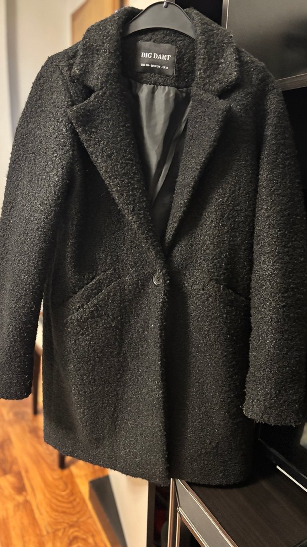 Siyah midi kaban, yün kumaştan, kürk detaylı ve kesik yakalıdır. Normal kesim ve uzun kolludur, ofis için uygundur. Ürünün herhangi bir sıkıntısı yoktur 34 36 beden aralığında