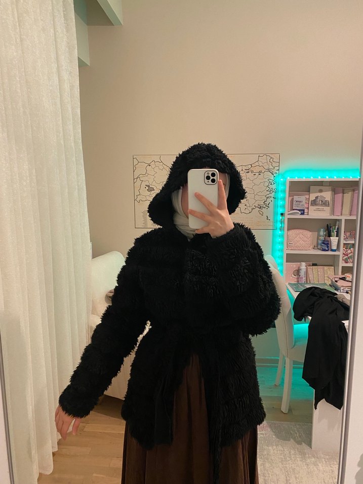 kürklü, sıcak tutan bir kumaştan yapılmıştır, içi keçe mi ismini bilmediğim bir kumaştan yapılmış ve bu kumaş sayesinde sıcacık tutuyor, S bedendir, hiçbir sorunu yoktur kusağı da vardır Marka temsilidir