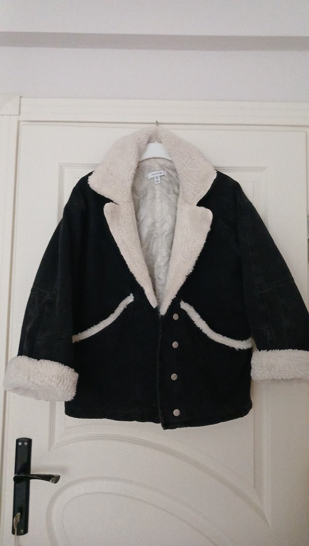 Siyah süet kumaştan, kürklü yakalı, manşetli ve cepli, bol kesim kadın ceket. Notlu yaka ve uzun kollu, rahat ve şık bir sokak stili sunar.