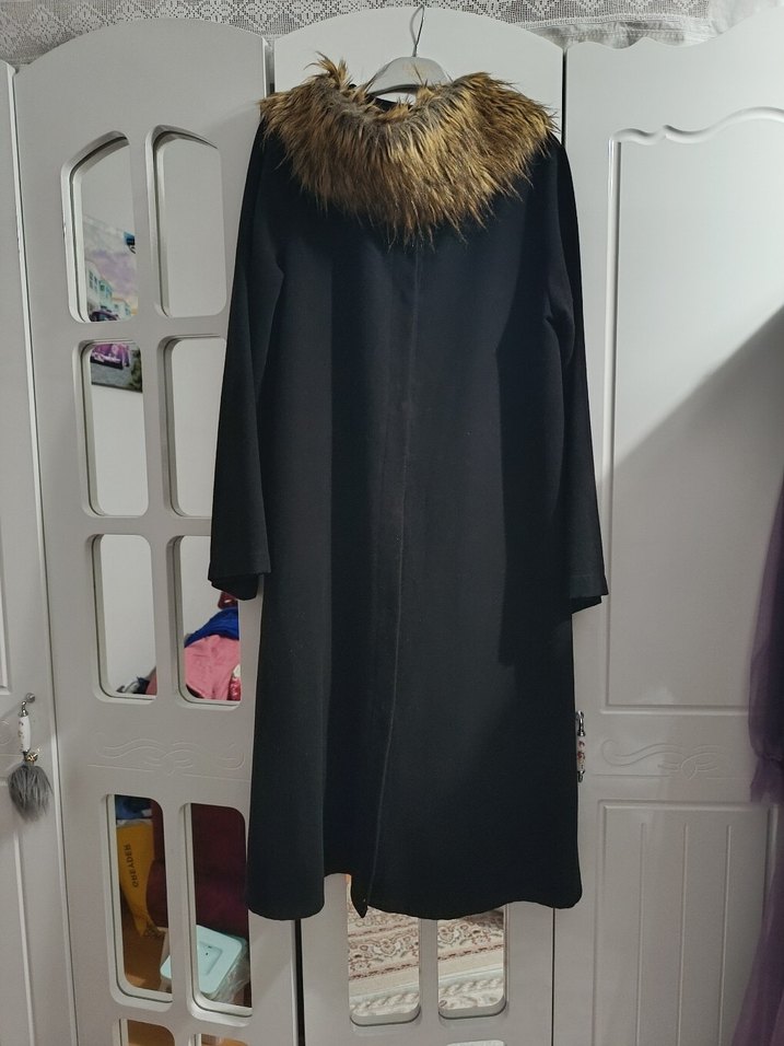 Yumuşak ve sıcak kumaştan yapılmış, bol kesim, uzun siyah kaban, seyyar kürklü isterseniz takmaya bilirsiniz ispanyol kesim, oversize da tercih edilebilir detayli bilgi icin mesaj atabilirsiniz. hicbir sorunu yok kuması polarımsı yapida icinde saten astar mevcut. butikten alindi mevsimlik olarak da tercih edilebilir. ışıktan kaynaklı renk guzel gorunmuyor ama simsiyah kusursuz. cok rahat yapışmayan kumas