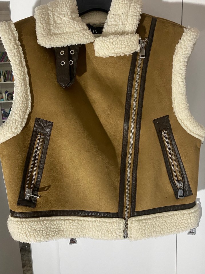Kürklü Süet Kahverengi Biker Yelek