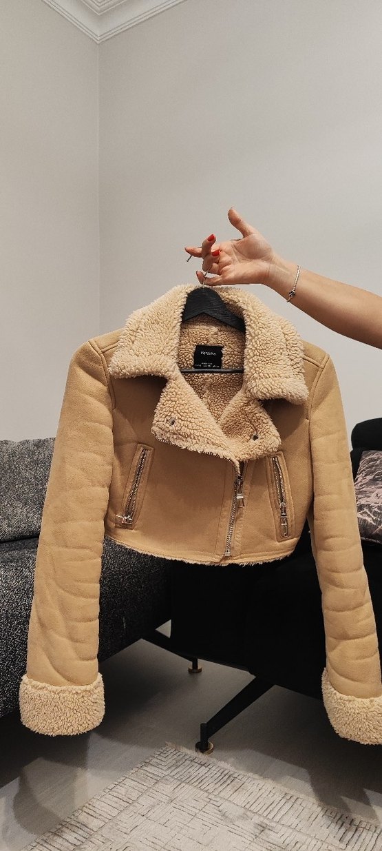 Kürklü yaka ve manşet detaylı, süet kumaştan yapılmış, kısa ve vücuda oturan kadın ceketi. Günlük rahat kullanıma uygun.