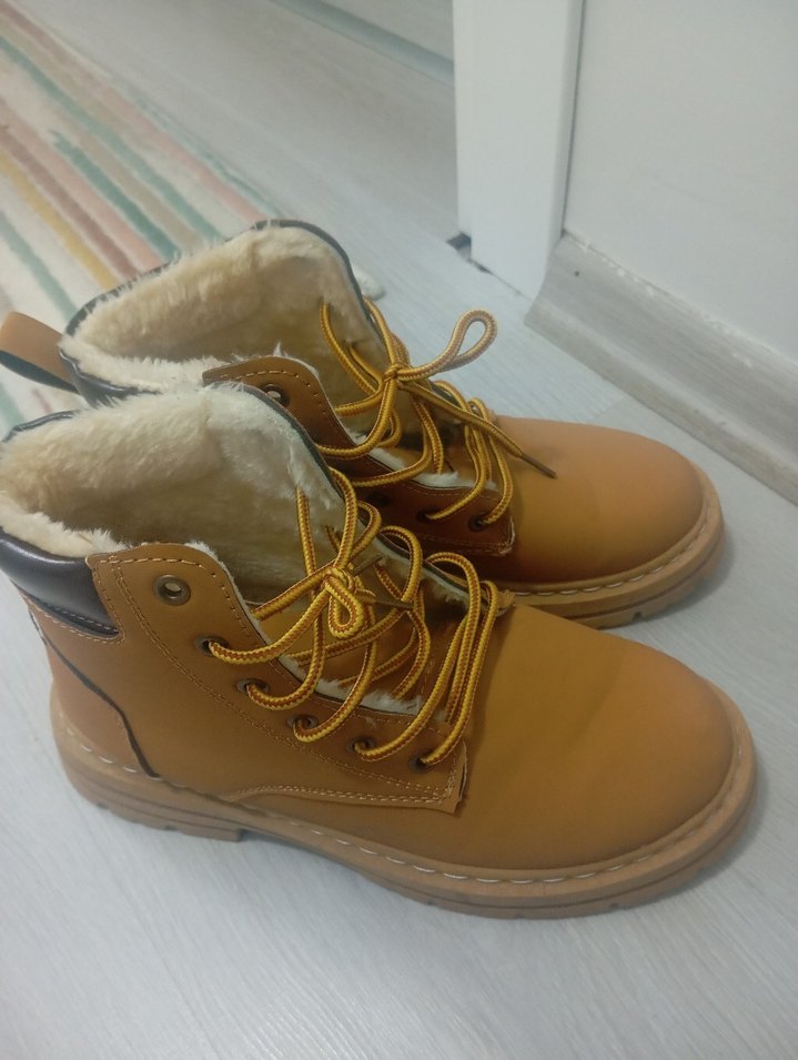 Taba rengi, kürklü iç detaylı, dolgu topuklu ve kauçuk malzemeden üretilmiş bot. Trendy ve normcore tarzına uygun.dar geldiği için veriliyor