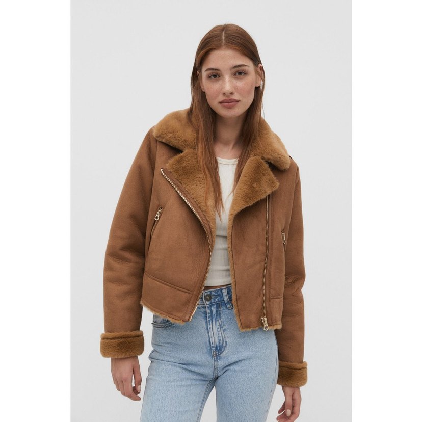 Kürklü Taba Süet Kadın Ceket biker stradivarius