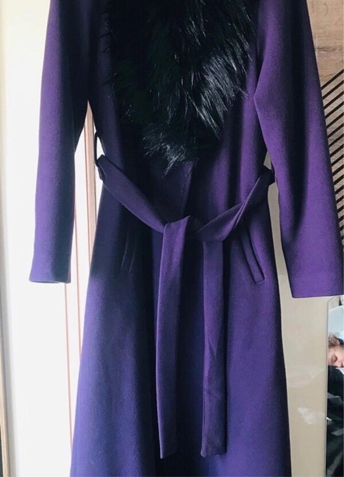 Mor kaban, yumuşak ve sıcak kumaş, kürklü yaka ve belde bağlama detayı ile. Uzun kollu, kuşaklı mor kaban, siyah detaylı yakaya ve yan ceplere sahiptir. Ürün bikaç kez giyildi, kalitesi çok iyi kumaşı şahane, geçen sezon aldım, yeniden farksız, hiçbir deformesi yok, mağazadan alınmış gibi yepyeni, dolabımda yeni sahibini bekliyor (göğüs:52, kol uzunlu:58, boy: 120 cm) #kaban #mont #kaşe #keçe #kaşmir #seçil #hanzade #ykz #ykzceylan #seçil #armine #ipekyol #zara #mango#bershka #moor #senna #roman