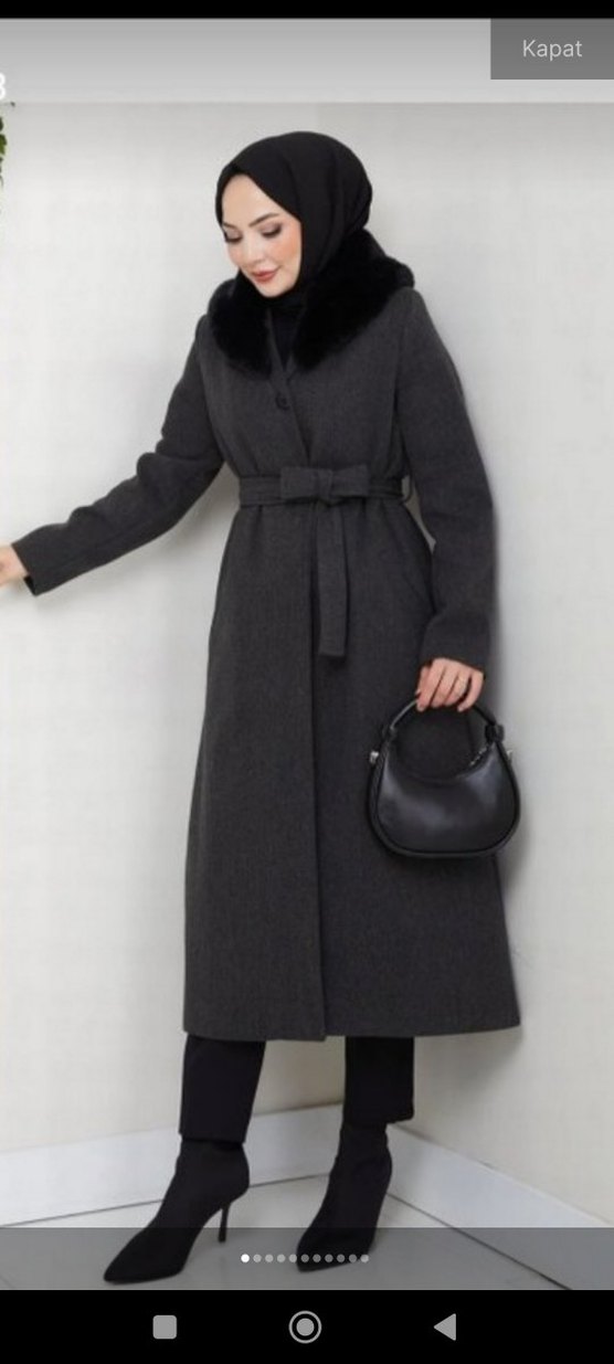 Kürklü Yaka Kemerli Antrasit Kaban fiyat sorunuz