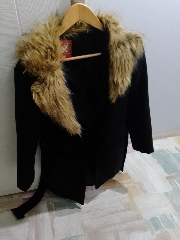 Kürklü Yaka Siyah Kadın Kaban