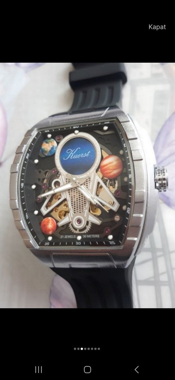Kuerst Kurmalı-Otomatik..Sıfır Kutulu Ürün..Geniş Metal Kasa, Kaliteli Saatdir....Silikon Esnek Kordon...Uzay Temalı Kadran...50mm Çap..3 Atm..Kadran ve İbreler Fosforludur..Gösterişli Kaliteli Saatdir...Farklı Saat ve Ürünler için. Şuan Satışı Olmayan Saatdir..Benzer Ürünler 7000-9000 Civarıdır... Diğer İlânlarıma Bakınız...⌚