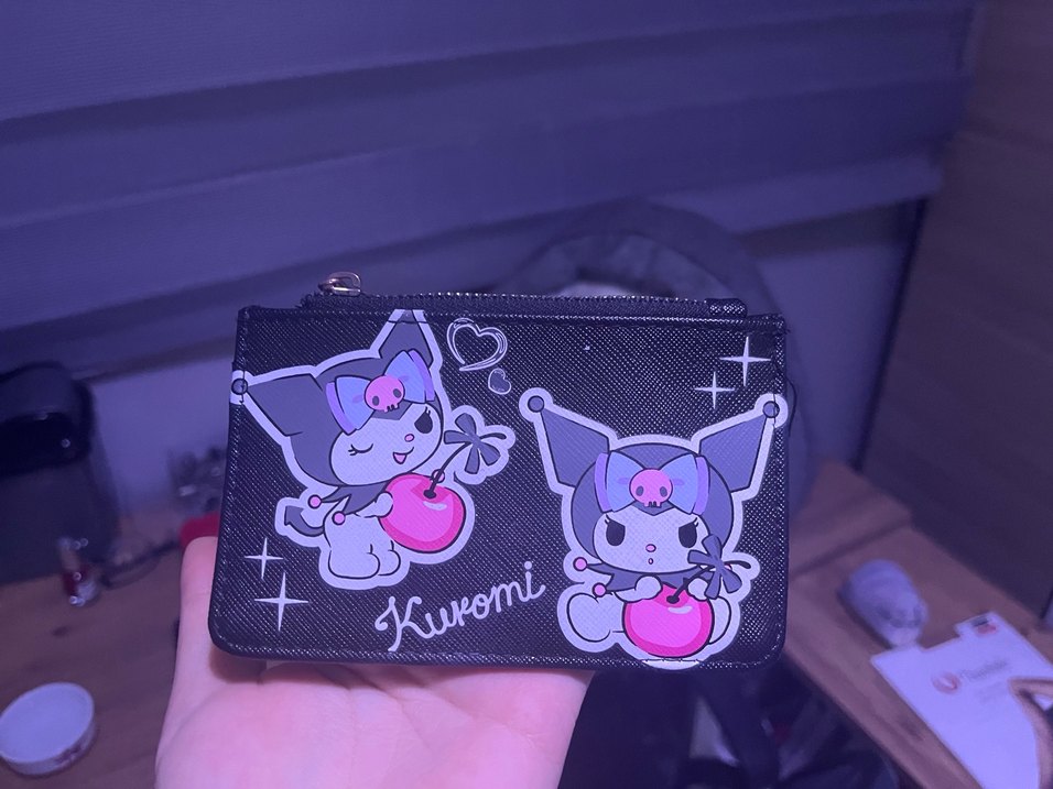 Koyu pembe Kuromi baskılı, fermuarlı cüzdan. Gotik tarzda, rock punk havası taşıyan çocuklar için şık ve kullanışlı.fermuarinda kararma var fiyata yansıttım