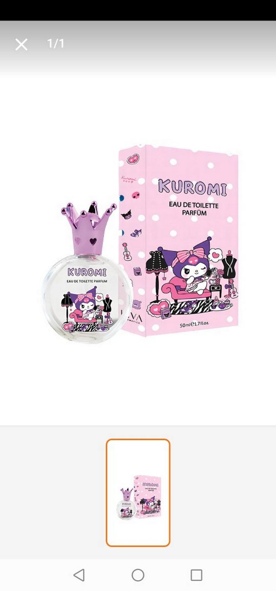 Kuromi Eau de Toilette parfüm, taç şeklinde kapaklı 50 ml şişede sunulur. Hafif ve ferah kokusu vardır.