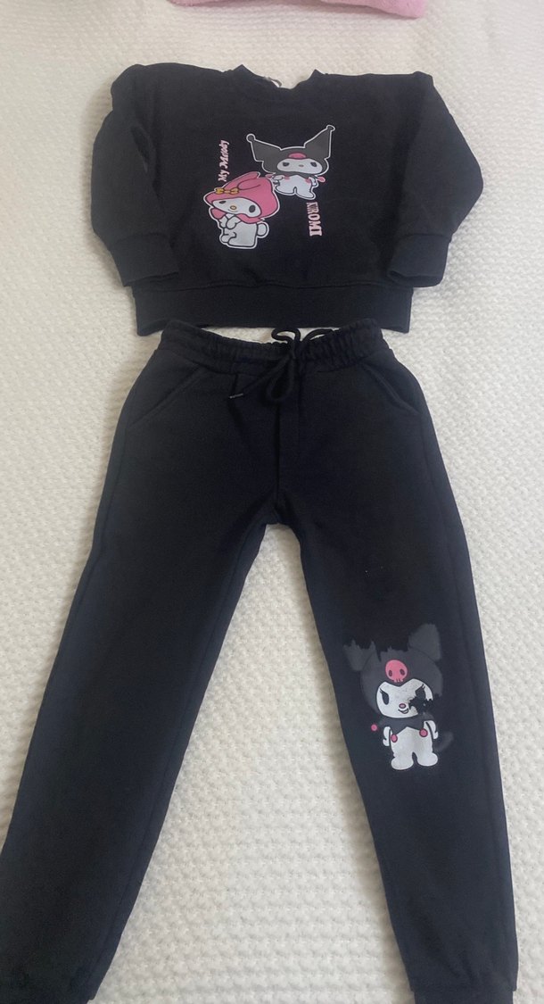 Kuromi Kız Siyah Baskılı Triko Eşofman Takımı