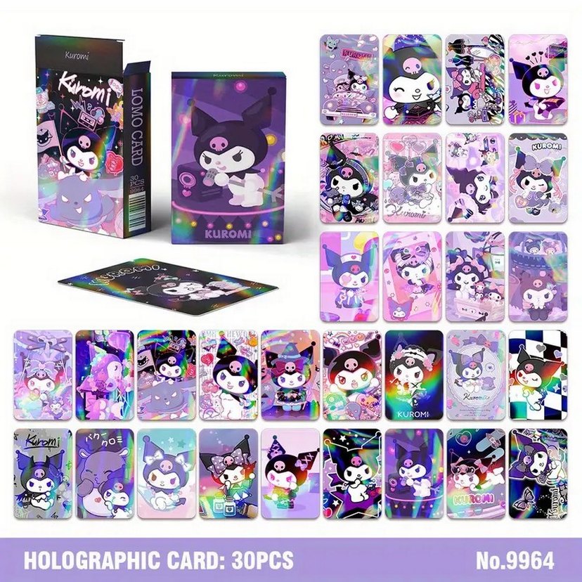 Kuromi temalı, çeşitli karakterlerin yer aldığı 30 renkli karttan oluşan oyun seti. Masa oyunu ve koleksiyon için uygun.