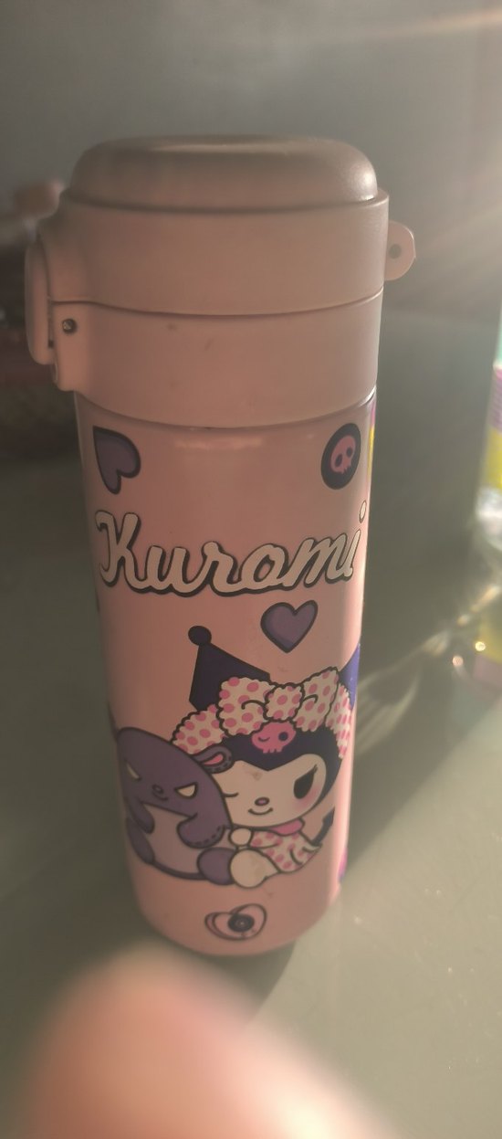 Pastel pembe renkte, Kuromi karakterli çocuk matara suluk.ici çelik kapli kapagi klipsli 500 ml