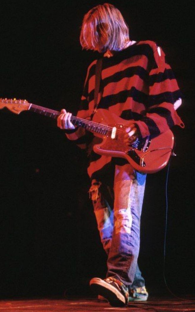 Kurt Cobain grunge tarz kırmızı siyah çizgili örme oversize kazak. Bir iki kere giyildi temiz ve defosuzdur.