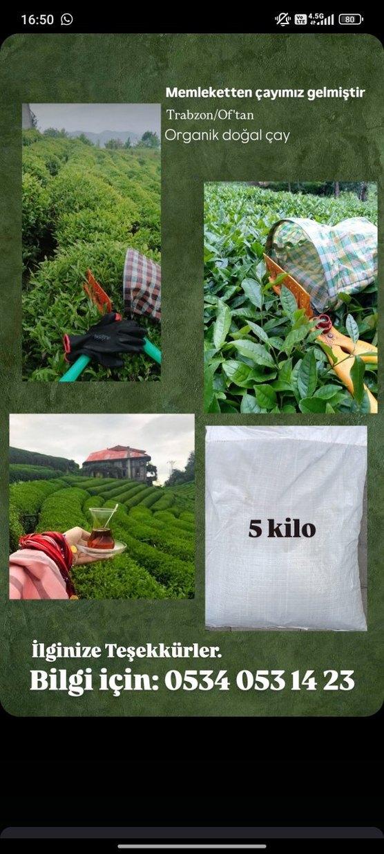 Organik kuru çay 5 kilo torbada paketlenmiştir. Detaylar için verilen numara ile iletişime geçebilirsiniz.