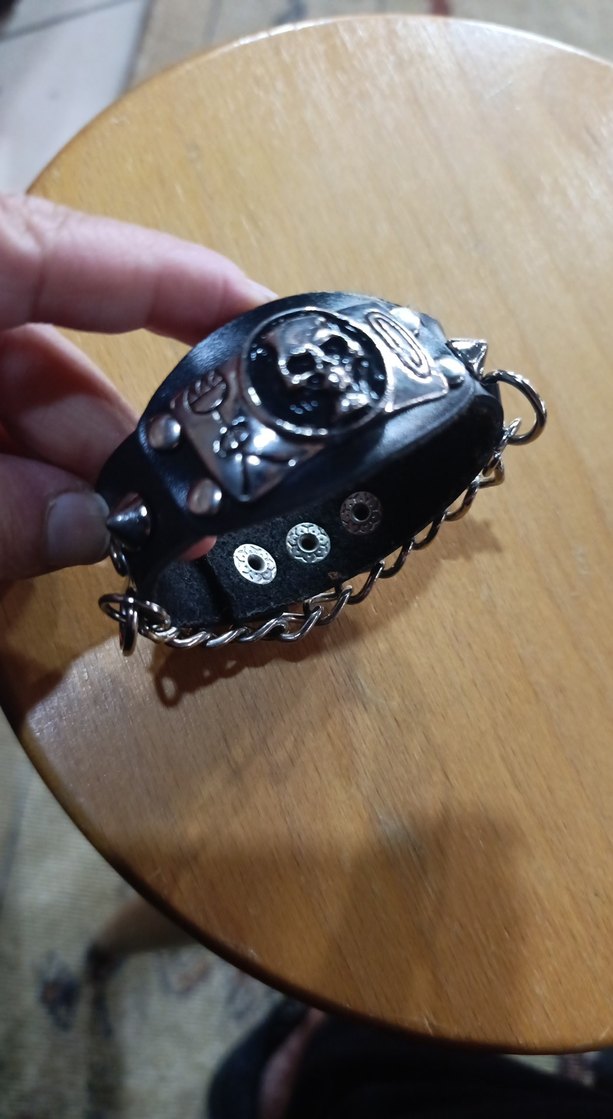 Metal perçinler ve zincir detaylarıyla siyah biker tarzı erkek bileklik, kuru kafalı amblem içerir. zara #mango #çiçeklielbise #zara #mango #ylondon #tüzün #berchka #kumas hırka #ceket #kumaşceket etek #vintage #şık #kotceket #stiletto #bot #çizme #gömlek #tasarım #zara #mango #ipekyol #channel #abiye #trençkot #pardesü #kap #beyaz #siyah #kırmızı #mor #derimont #deri #montkoton #pologarage #ceket #antika #fatoşbebek #büyükbeden #abiye #etek #vintage #şık #kotceket #stiletto #bot #çizme #fatoşbebek #zelişbebek #barbie #antikabebek #fatoş #bileklik #kurukafabileklik #bileklik