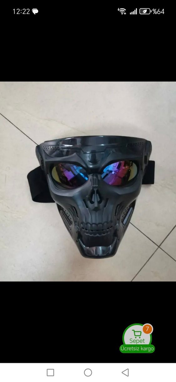 Siyah renk.Renkli göz. kuru kafa modeli. rahat.Lastikli ayarlanabilir. motorsiklet kasklarında ve normal olarak kullanılabilir.