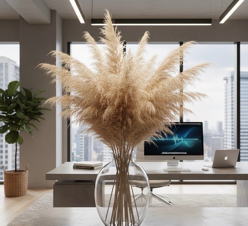 pampas otları, mekâna doğal bir dokunuş katıyor.