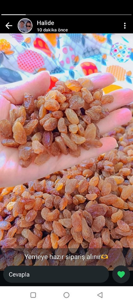 Bir elde tutulan kuru üzümler, doğal atıştırmalık olarak uygundur. kilo fiyatıdır kendi mahsulumuzdur Manisa Alaşehir
