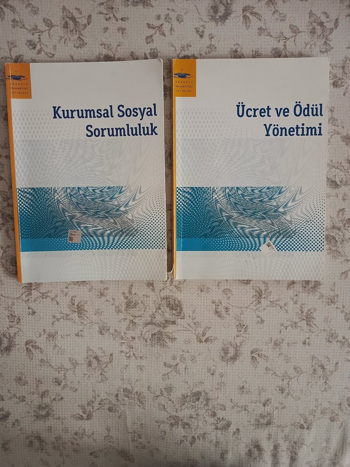 Kurumsal Sosyal Sorumluluk ve Ücret ve Ödül Yönetimi konularını içeren iki kitap.bir tane kitap fiyatıdır. ikisini alırsanız indirim yapılır.