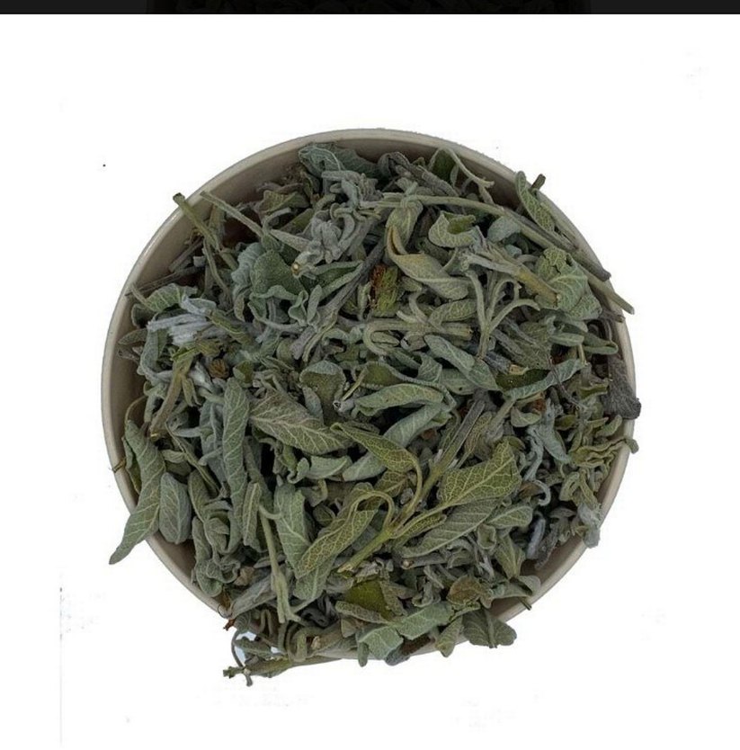 Kurutulmuş adaçayı yaprakları, doğal ve toprak kokusuna sahip, bitkisel kullanım ve doğal tedaviler için uygundur.