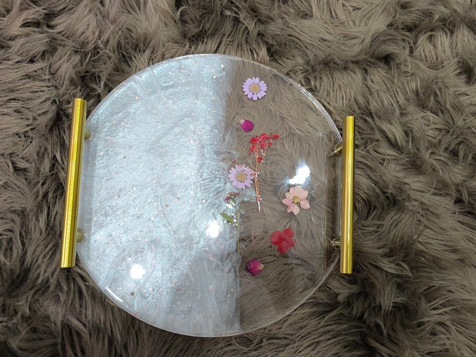 Kurutulmuş Çiçekli Epoksi Tepsi