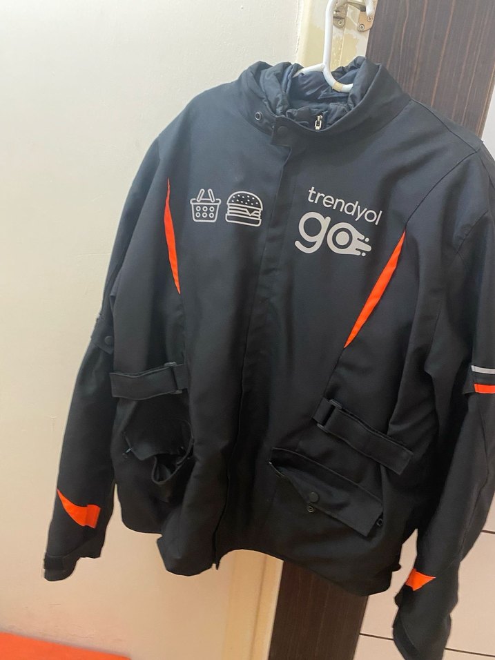 Trendyol Go kurye montu. Bedeni 3XL ama trendyolun beden tablosu biraz farklı. iyi durumda. İstanbul Beyoğlu acil satılık elden de verebiliriz