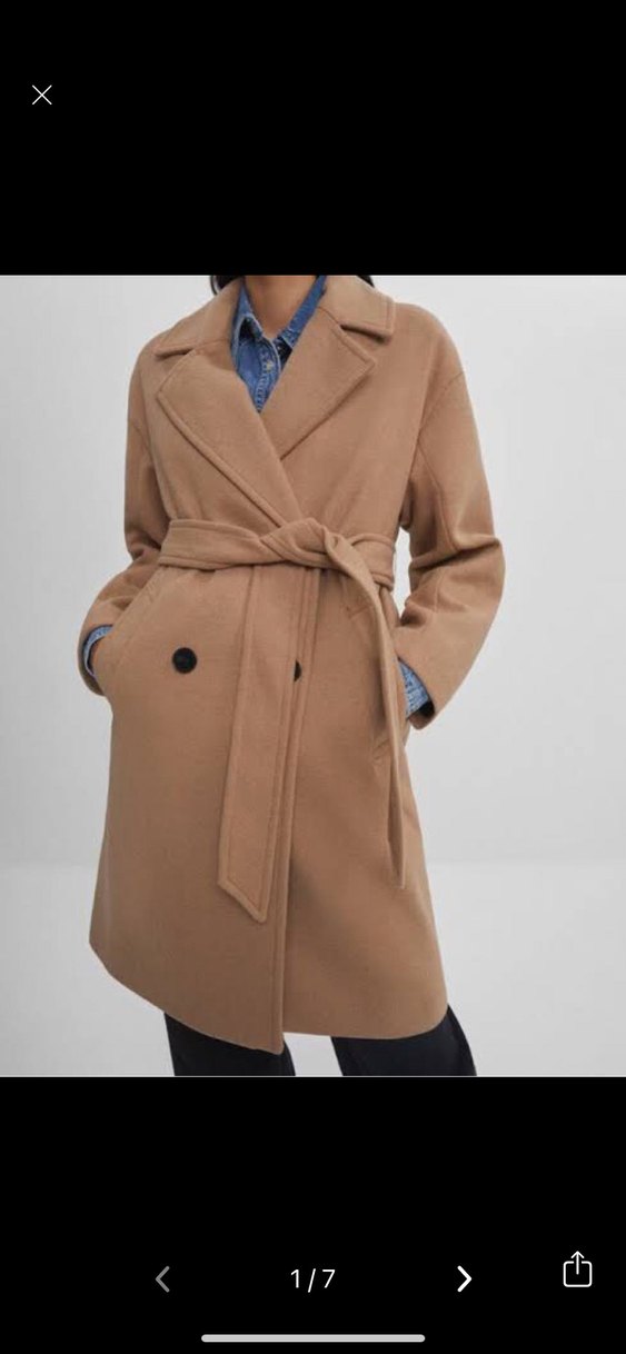 %50 yündür. Bej renkli kadın kaban, kuşaklı ve çift düğmeli tasarıma sahiptir. Klasik yaka ve yan ceplidir, şık ve sıcak tutar. Hafif tüylenme var, makineyle temizlenip gönderirim.