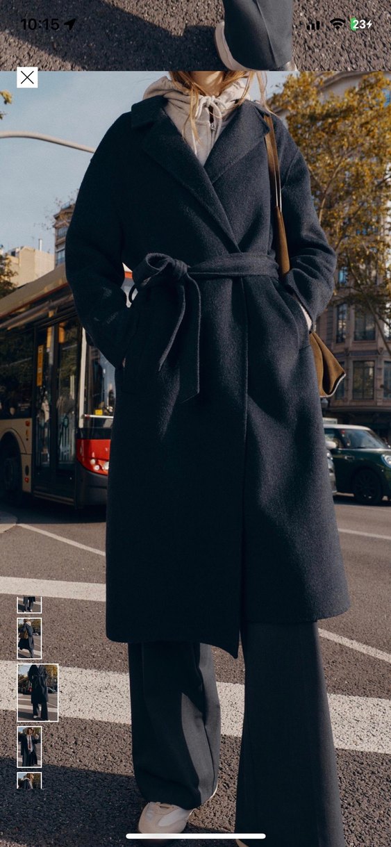 Siyah uzun kaban, kuşaklı ve cepli, yumuşak ve sıcak kumaştan üretilmiştir.