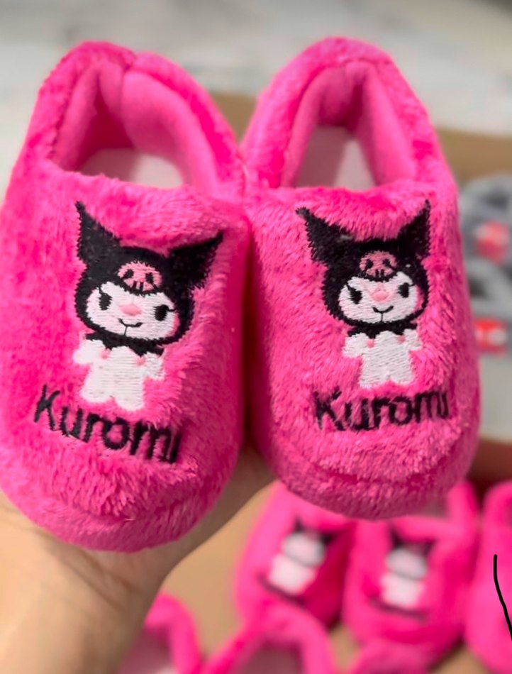 Kız çocukları için yumuşak tüylü, renkli Kuromi baskılı ve kürklü detaylı sıcak ev terliği, rock punk havası katıyor. 20,21,22,23,24 numaraları mevcuttur