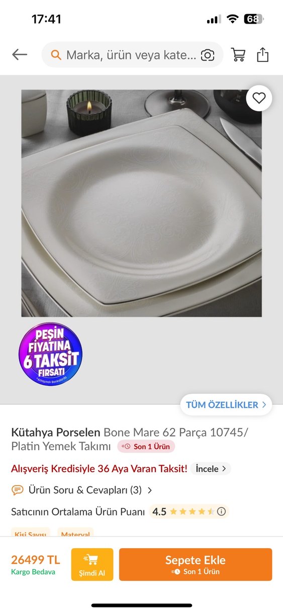 Kütahya Porselen'in 62 parçadan oluşan beyaz ve platin detaylı yemek takımıdır.Hiç kullanılmadı dolapta bekliyor.Sadece paketten çıkarıldı kırık vs yoktur