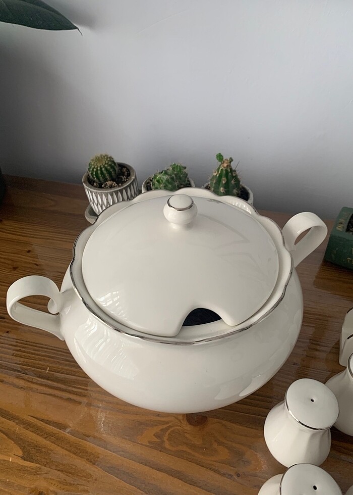 Kütahya porselen bone çorba tenceresi 2adet tuzluk 2 adet karabi