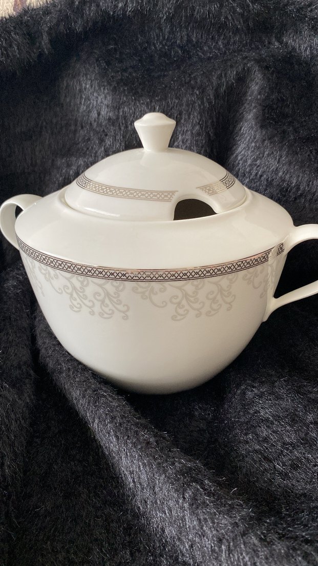 Kütahya porselen Gri nakış desenli beyaz, kulplu ve kesikli kapaklı modern klasik tarzda çorba tenceresi ürün hiç hiç kullanılmadı öylece dolapta duruyor geçen sene çeyizini içindeki kutudan çıktı kullanmadığım için satışta ürünü daha hiç yıkamadık bile