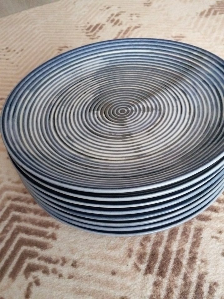 Gri renkte, dairesel desenli yuvarlak tabak seti. Pürüzsüz dokulu ve modern tasarımlı tabaklar, yemek servisi için uygundur. ️Kütahya porselen 8 adet