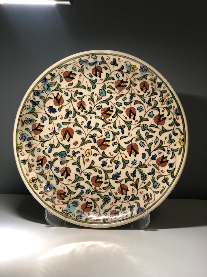 Eski yıllara aittir. Duvara asılabilir. Klasik tarzda, koyu çok renkli çiçek desenli Kütahya seramik.Kırığı yoktur. Görüntüsüne güzellik katan yıllanmışlık vardır.