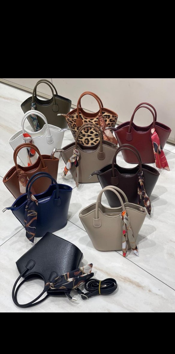 Kahverengi deri, yılan desenli, kemerli kadın çantası. Günlük kullanıma uygun, çağdaş tasarım ve dekoratif fular içerir.