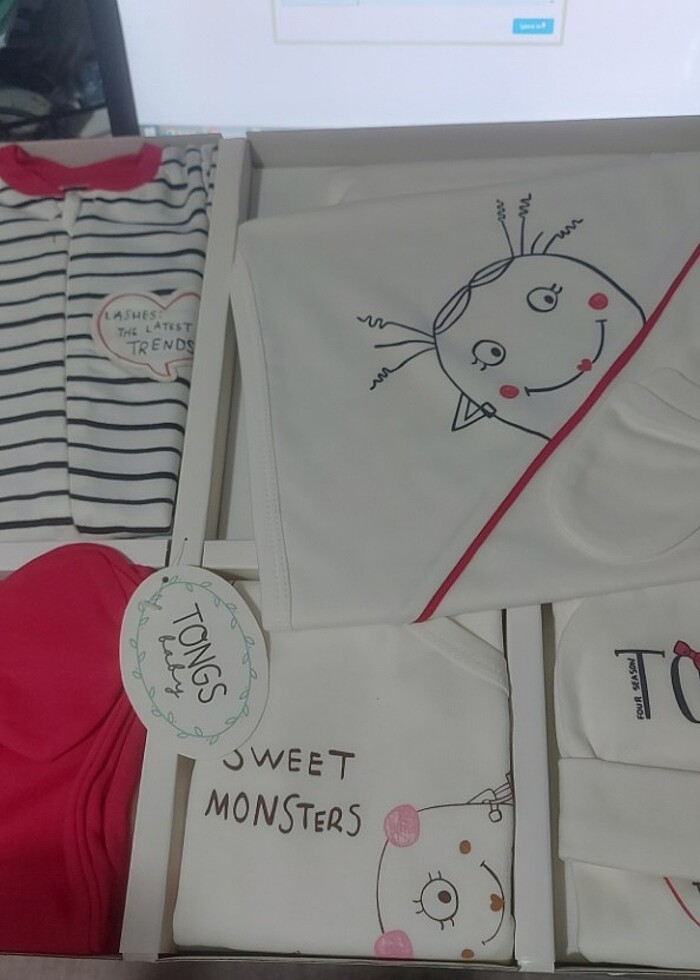 Hediyelik olarak da tercih edebileceğiniz, kutu içerisinde eldiven, yakalık, şapka ve patikli alt, çıtçıtlı üst , zıbın, battaniye, tulum, iç zıbın, mendil bulunan bebek yenidoğan takımı