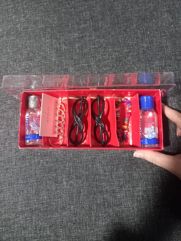 Hediye kutusuyla: 2 adet Eczacıbaşı Selin 35 er ml parfümlü kolonya lavanta ve buz ferahlığı, 2 adet toka, 1 adet rengarenk doğal taşlar bileklik ve 3 çift halka küpe kırmızı altın gümüş renkler bijuteri hepsi yeni birlikte fiyat. Farklı çeşitleri için sayfama bakabilirsiniz.