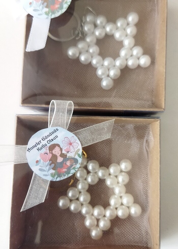 Hediyelik yıldız anahtarlık ister krem ister beyaz yıldız anahtarlık